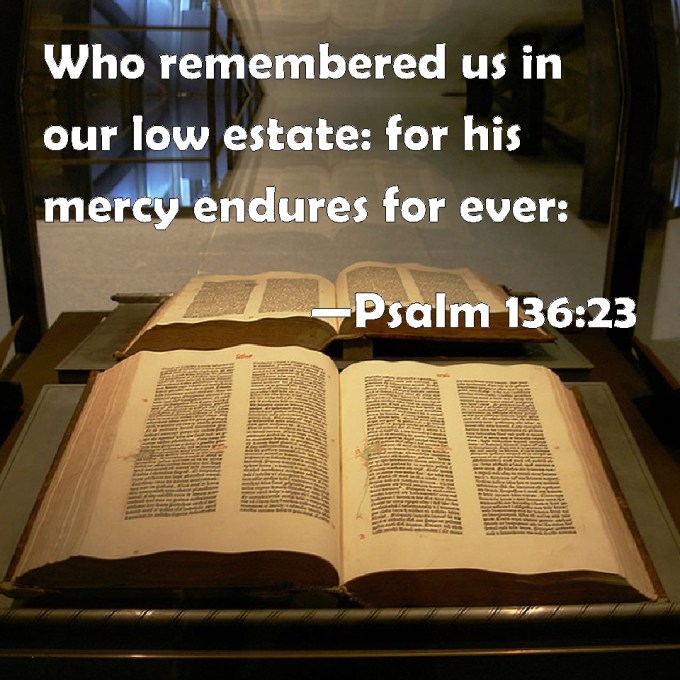 [23] Who remembered us in our low estate: for his mercy endureth for ever: